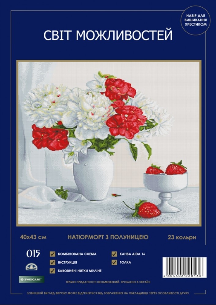 015 SM-N Наб. д/виш. “НАТЮРМОРТ з ПОЛУНИЦЕЮ” — DMC (40 * 43 см)