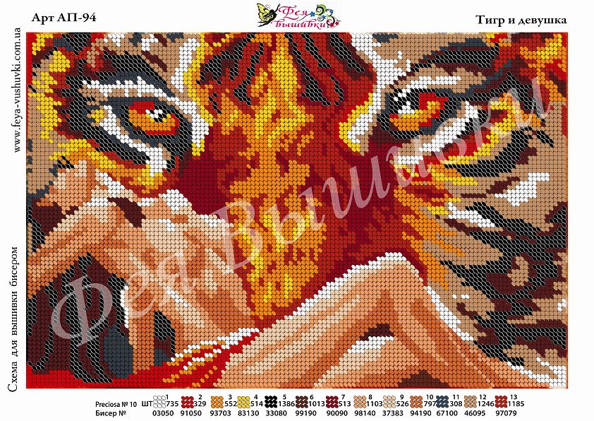 Главная страница » Магазин » Наборы и схемы » Фея Вышивки » Фея Вышивки АП-94 Тигр и девшка, схема под бисер