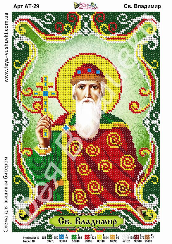 Главная страница » Магазин » Наборы и схемы » Фея Вышивки » Фея Вышивки АТ-29 Св. Владимир, схема под бисер