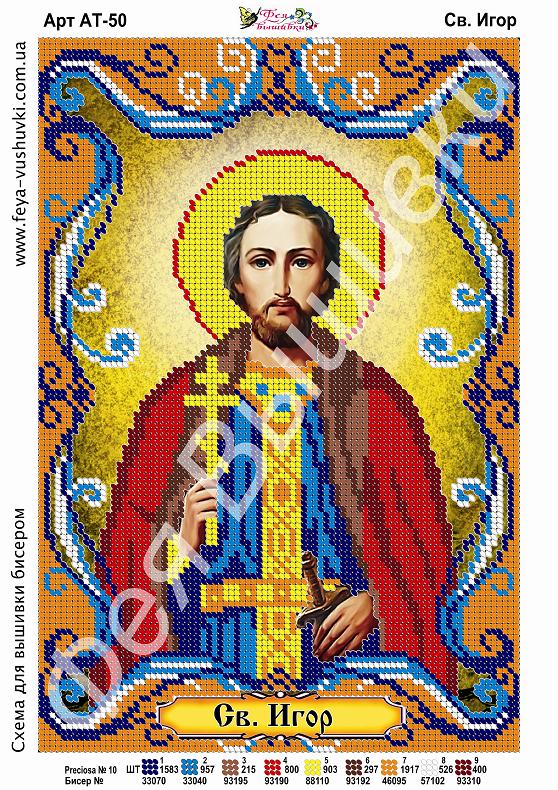 Главная страница » Магазин » Наборы и схемы » Фея Вышивки » Фея Вышивки АТ-50 Св. Игор, схема под бисер