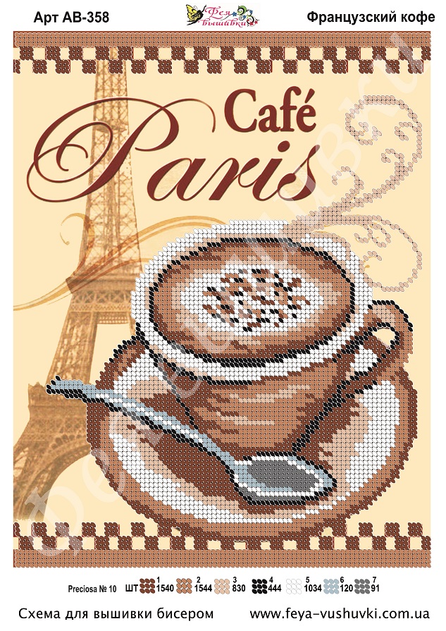 Главная страница » Магазин » Наборы и схемы » Фея Вышивки » Фея Вышивки АВ-358 Франзузский кофе, схема под бисер