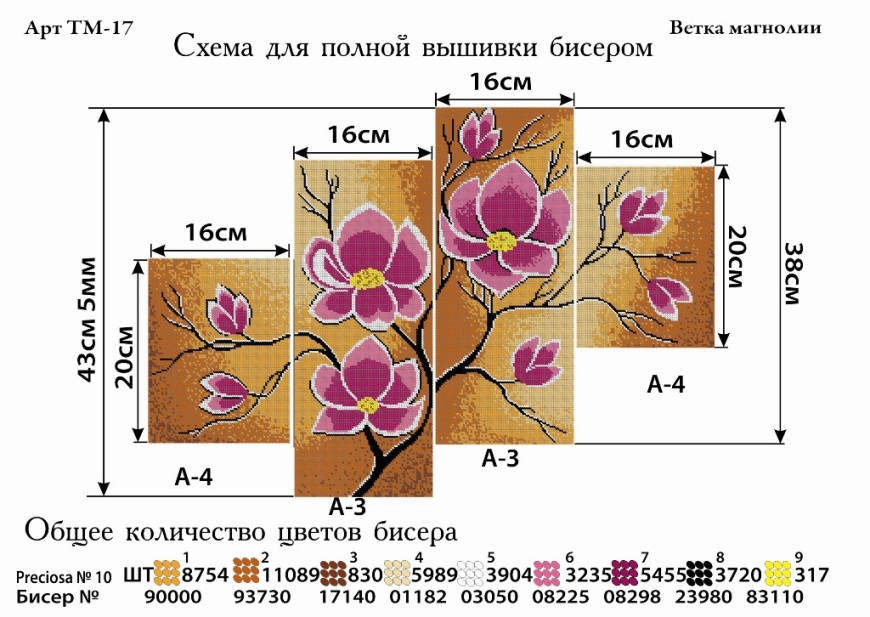 Главная страница » Магазин » Наборы и схемы » Фея Вышивки » Фея Вышивки ТМ-17 Ветка Магнолии, схема под бисер
