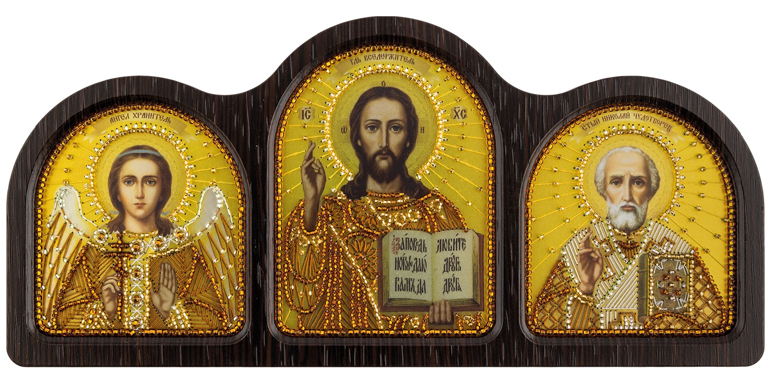 Новая Слобода СЕ6003 Триптих настольный золото (Ангел Хранитель, Спаситель, Николай Чудотворец