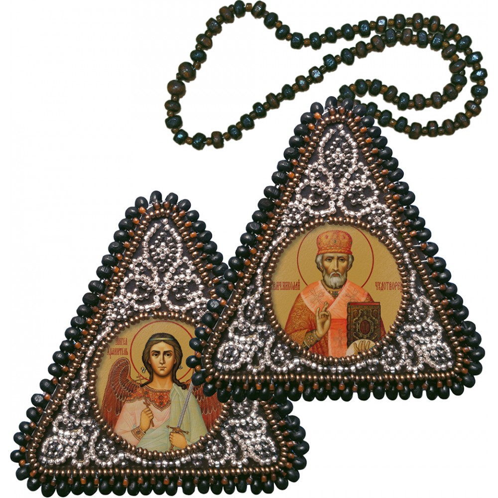 ВХ 1003 Набор для вышивания кулона Св. Николай Чудотворец и Ангел Хранитель, Новая Слобода