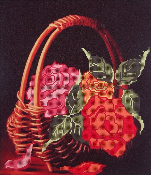 I.B. Studio Б-3040 Розы в корзине, рисунок на ткани под бисер