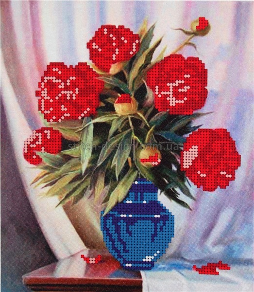 I.B. Studio Б-4039 Красные пионы, рисунок на ткани под бисер