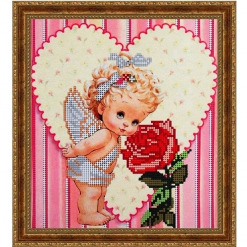 I.B. Studio Б-4047 Ангелок с розой, рисунок на ткани под бисер
