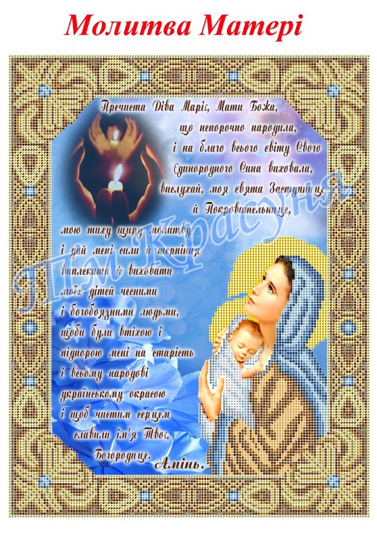 Главная страница » Магазин » Наборы и схемы » Схемы под бисер и нитку, разные » Красуня » Красуня ТМ Молитва матери, схема под бисер