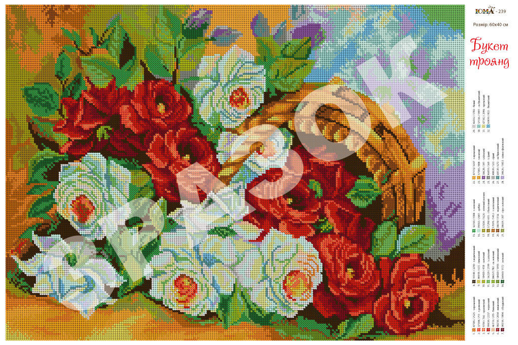 ЮМА 239 Букет роз, схема под бисер