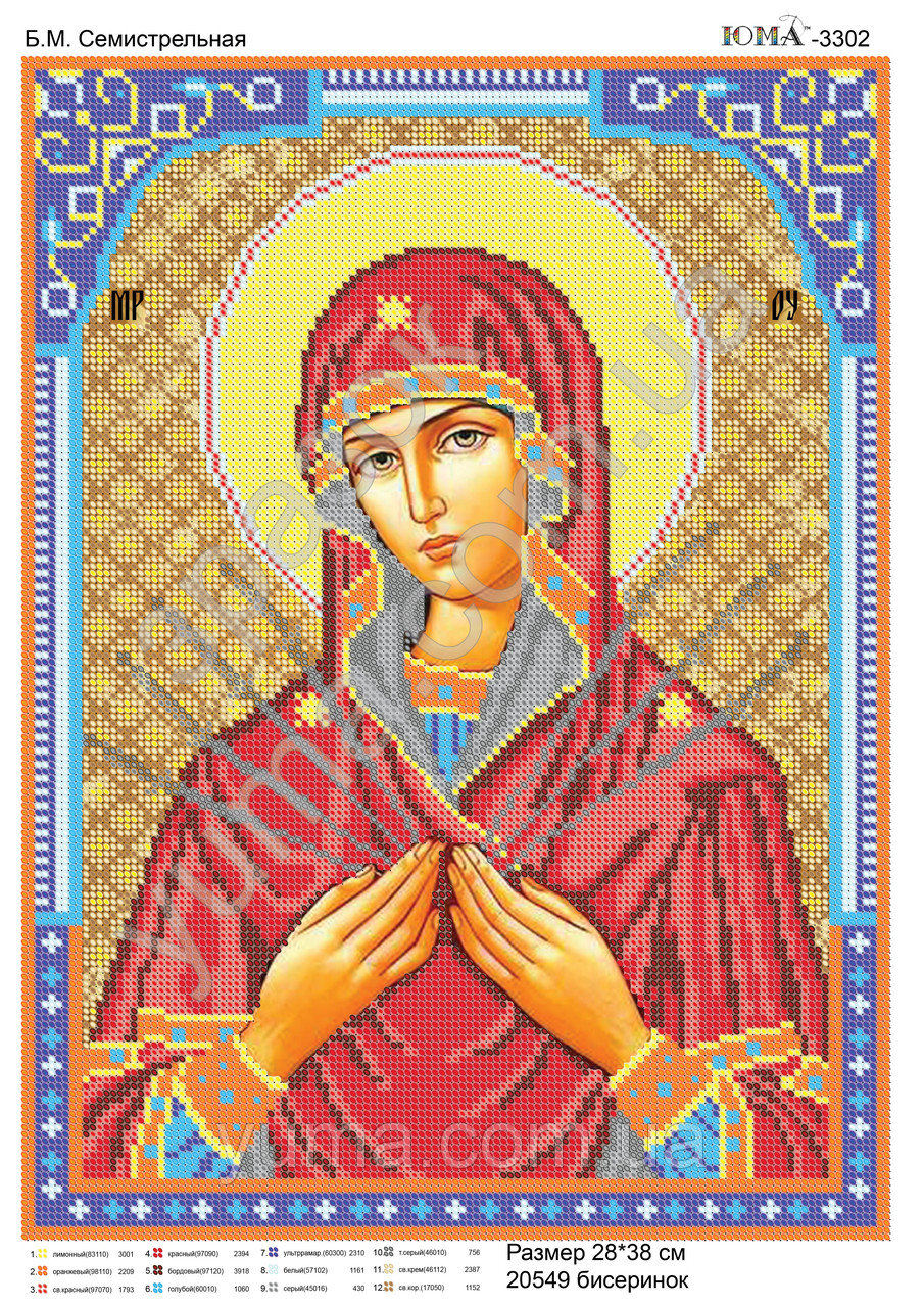 Схема для вышивки бисером на атласе “Б.М. Семистрельная” для удобства вышивания подклеена двумя слоями флизелина а сам атлас благодаря своим свойствам предаёт схеме характерный блеск который будет радовать взгляд. Размер 38 см. на 28 см.