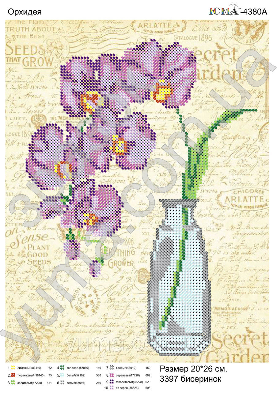 ЮМА 4380А Фиолетовая орхидея, схема под бисер