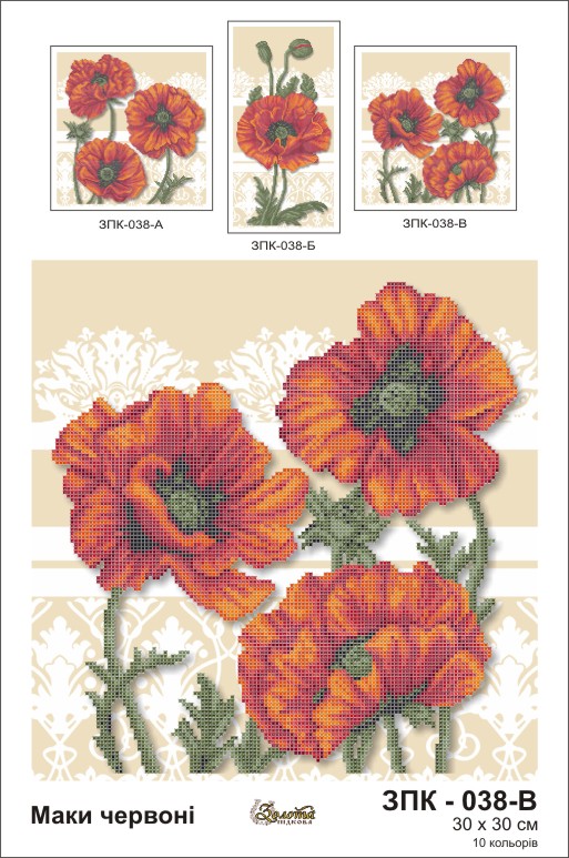 Золотая подкова ЗПК-038в Маки красные, схема под бисер