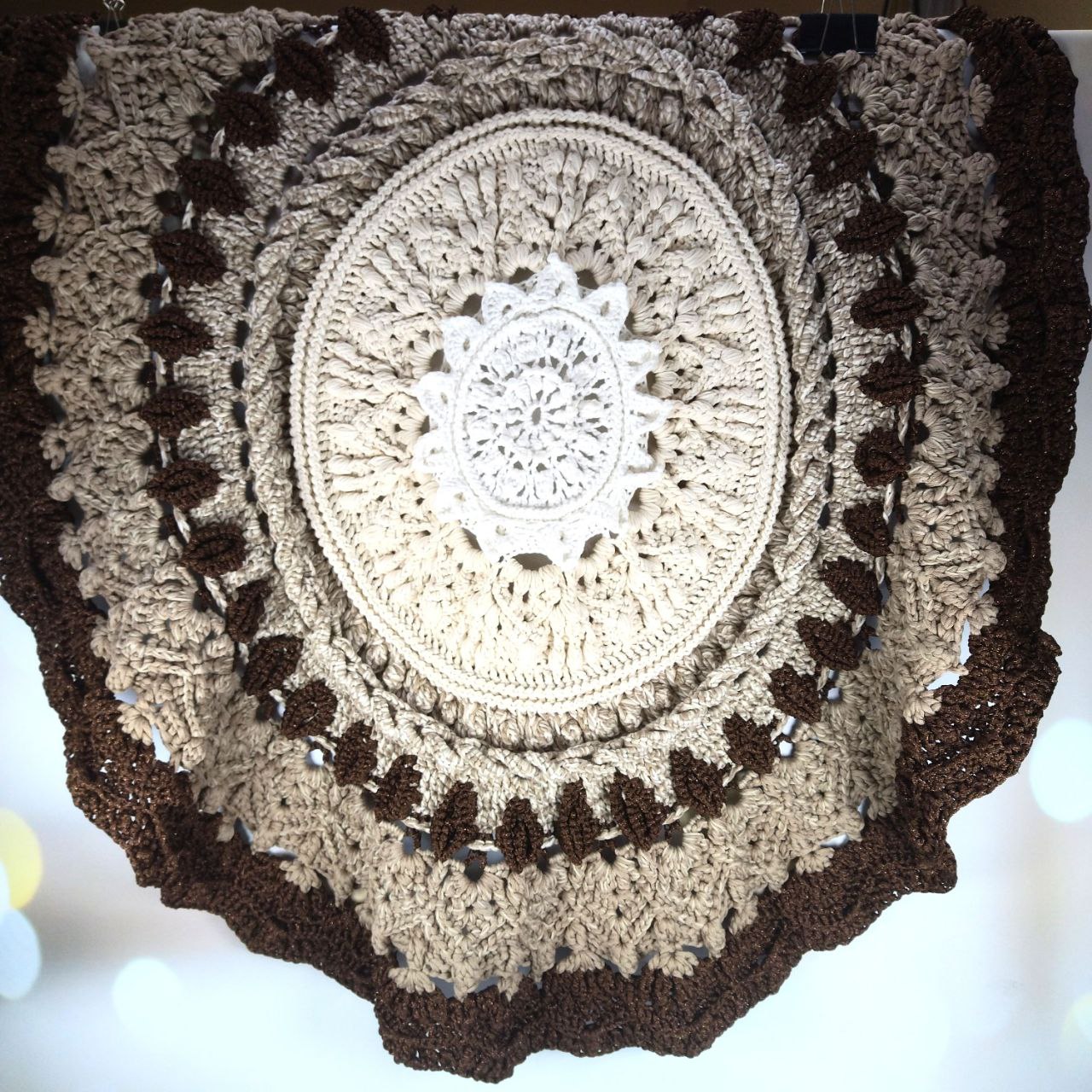 Главная страница » Магазин » Пряжа » В'язані вироби » Коврик Соняшник 90см коричнево-бежевий з люрексом