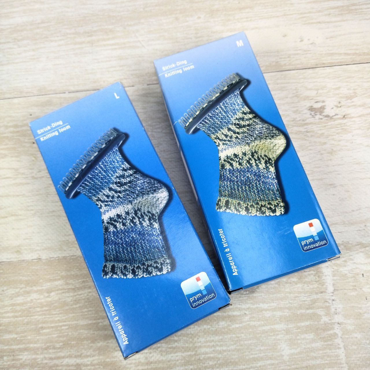 Пристосування для в’язання шкарпеток та мітенок є запатентованою інновацією від Prym. Воно призначене для простого виготовлення шкарпеток, гетр, мітенок або напульсників. Навіть користувачі без будь-яких попередніх знань в області в’язання можуть просто зв’язати шкарпетки з відмінною структурою петель, використовуючи це пластикове кільце.