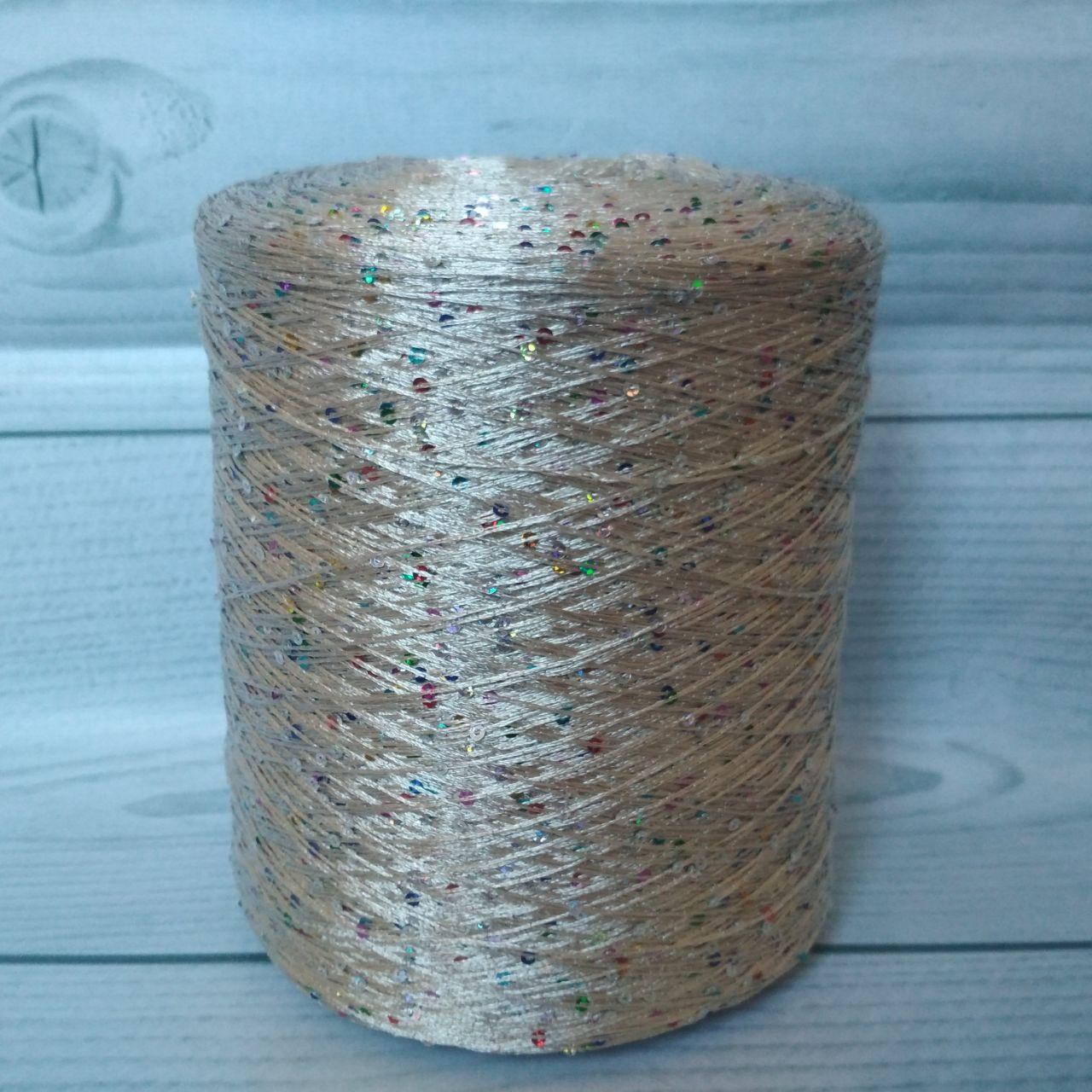 Пряжа Бобина Пайета 3мм 100г/800м серебро с перламутровой пайетой