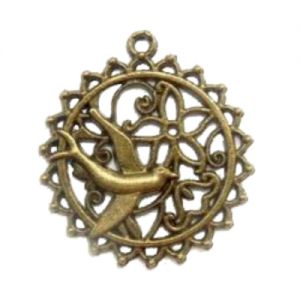 Металлическая подвеска Птичка в круге 32,2*29 мм .