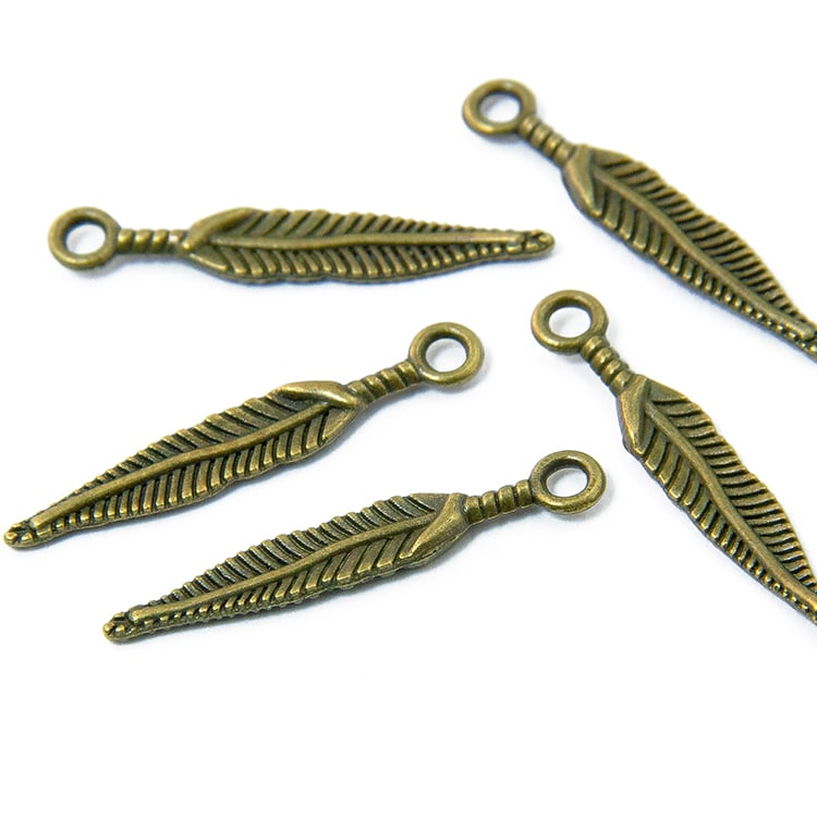 Кулон Перо, Металл, Цвет:Бронза, Размер: 29х5х2мм, Отверстие 2мм.