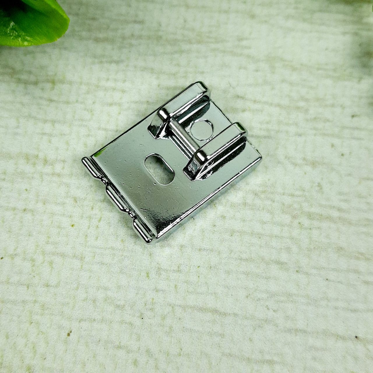 Лапка предназначена для вшивания канта. Часть канта находится по левой выемкой на подошве лапки, что позволяет проходить по толстому слою.