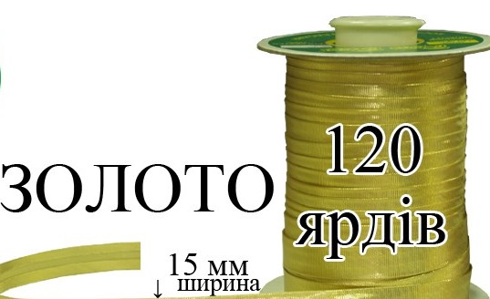 Косая бейка, атласная 15мм/120ярд GOLD золото КБА