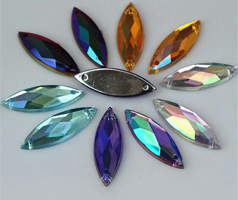 Главная страница » Магазин » Стразы » Камни акрил, стекло » Полустразы Листик 7*21мм цвет АВ, акрил