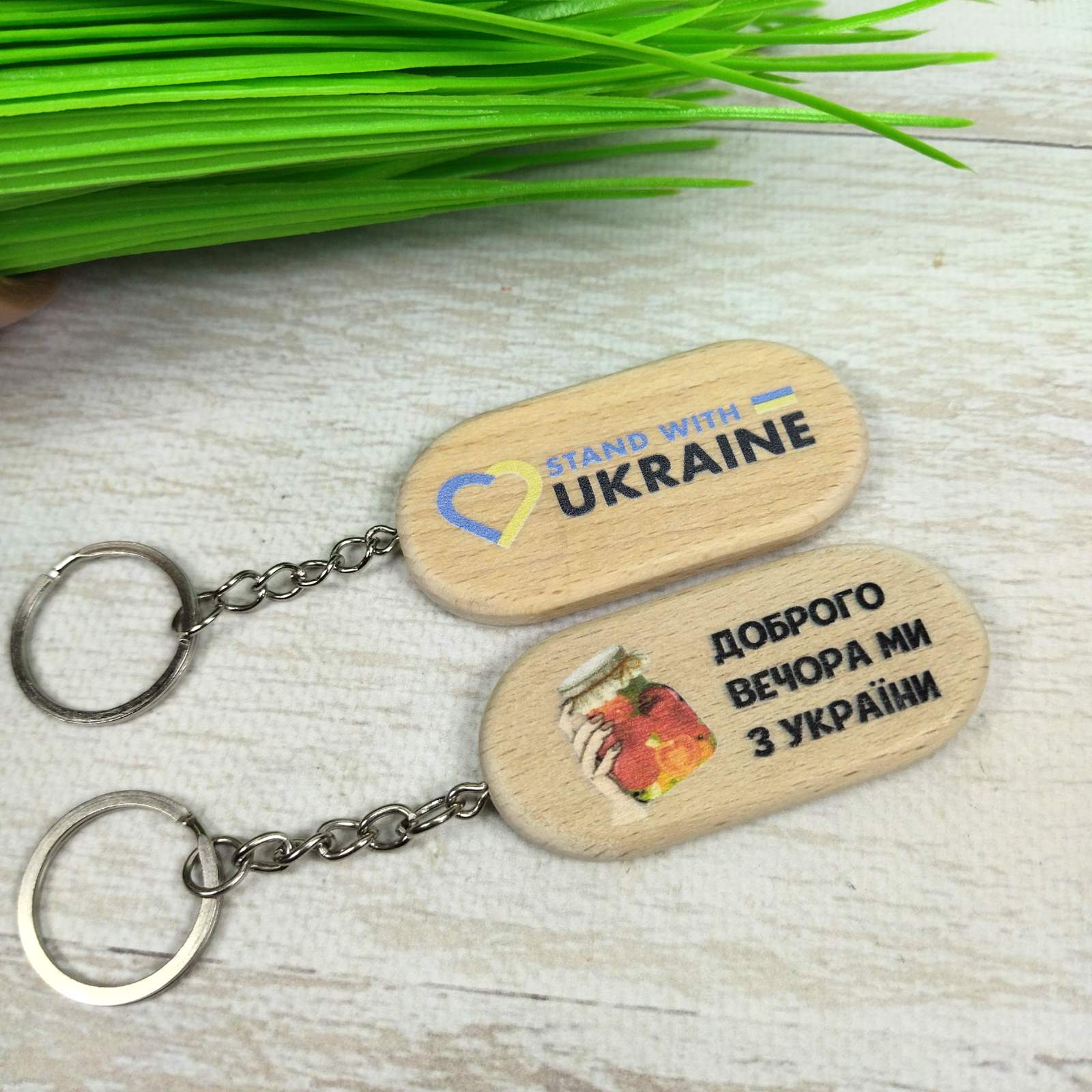 Главная страница » Магазин » Сумочная фурнитура, ручки » Карабины, Кольца для Ключей, Брелки » Брелок деревяный Доброго вечора! Ми з України 65*30мм