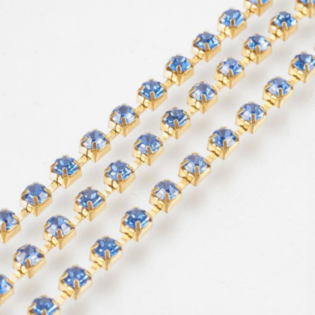 Главная страница » Магазин » Сумочная фурнитура, ручки » Ручки для сумок, фермуары, цепочки » Цепь Латунная со стразами 2мм Сапфир