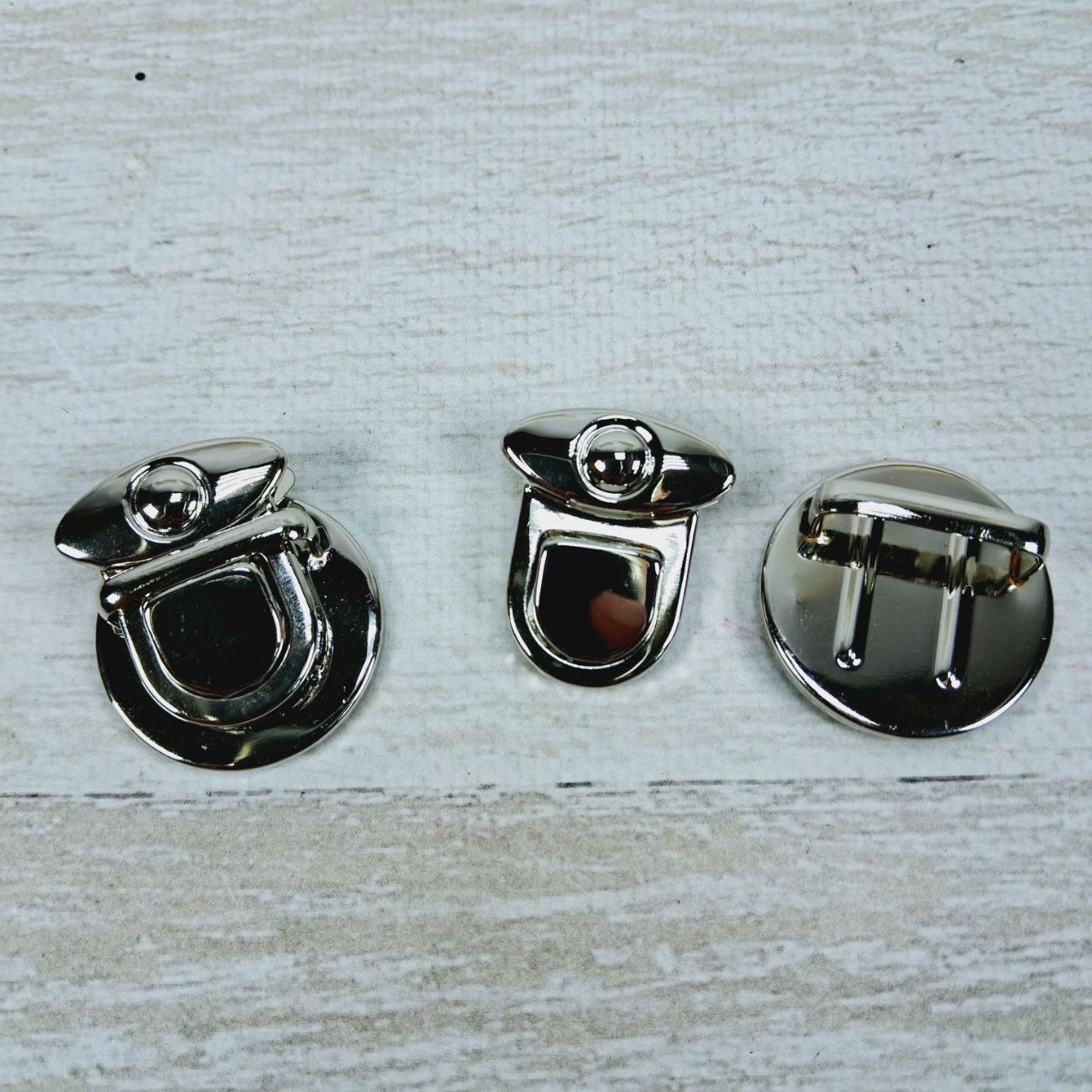 Металевий замок для сумки з кріпленням типу «поворотний механізм» легко застібається і кріпиться до виробу за допомогою «усиків» на задній частині.