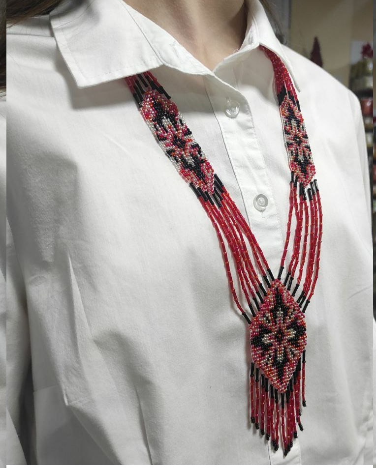 Будьте першим, хто залишив відгук на “Гердан з бісеру “Ромб” червоний з білим 48х6см”