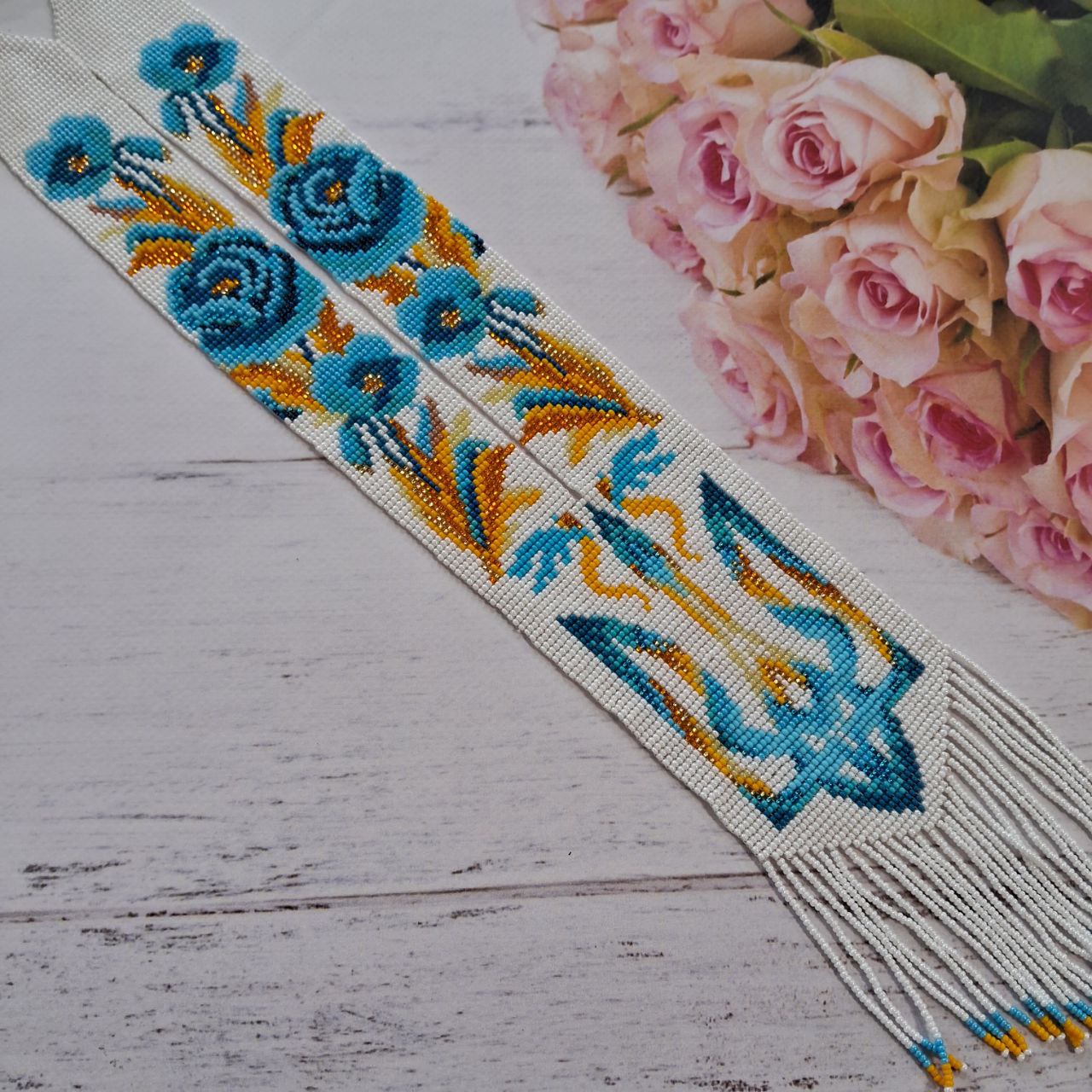 Гердан з бісеру “Україна” (на білому) 59*9см