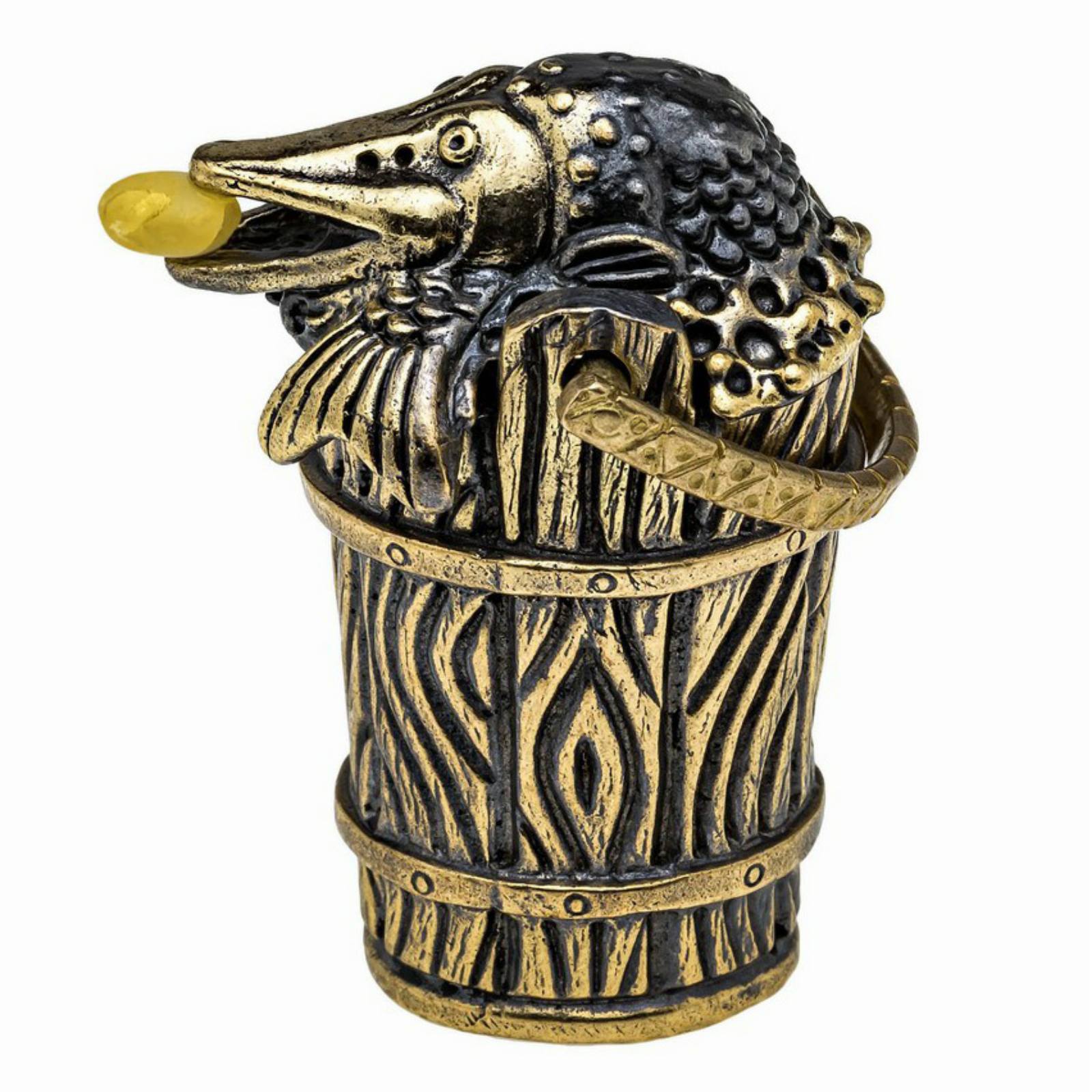 Главная страница » Магазин » Сувеніри » Сувенирные наперстки, колокольчики, шкатулки под Фаберже » Наперсток из бронзы и янтаря Щука в ведре №1052В