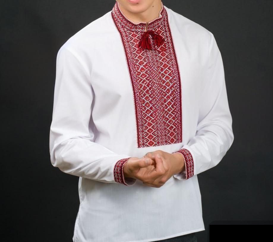 Вишиванка чоловіча р,44 рукав довгий червоно-біла 2019